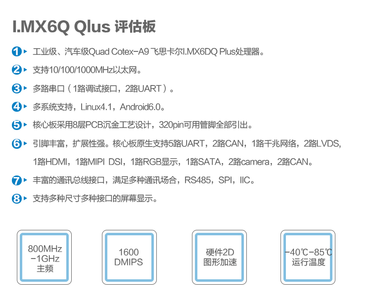 產(chǎn)品名稱:NXPI.MX 6Q Plus 核心板